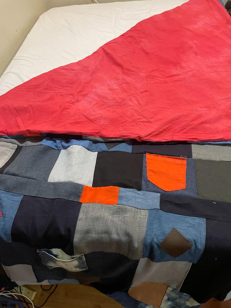 Functional Pockets: Features authentic denim pockets scattered across the patchwork—perfect for stashing your phone, glasses, or a TV remote.
