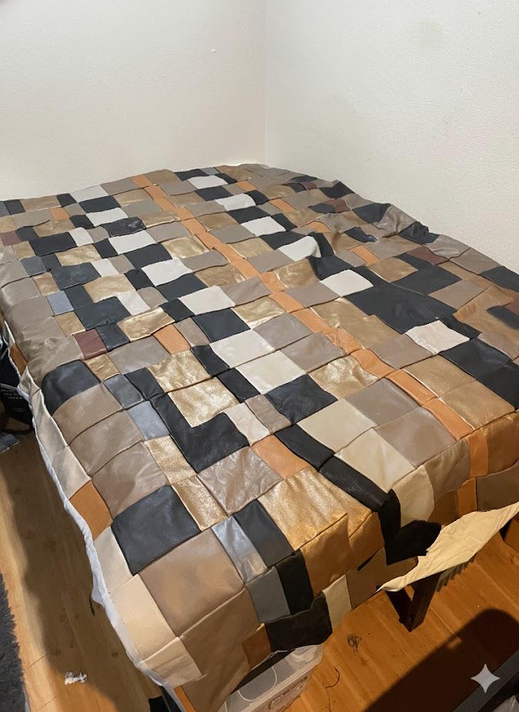 Experience the ultimate statement piece for your bedroom or living space. This is not just a duvet; it is a masterpiece of texture and tone, crafted from 100% genuine leather patches. Featuring a sophisticated mosaic of slate, espresso, sand, and shimmering metallic bronze, this weighted piece brings an immediate sense of "Executive Luxury" to any room.