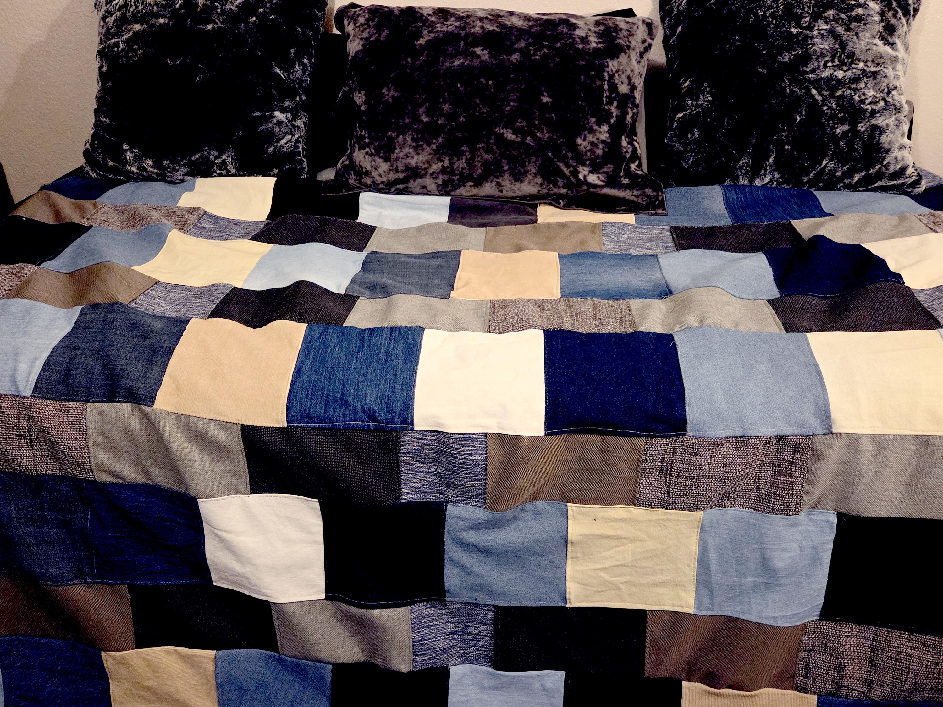 Wrap yourself in the comforting weight and rustic charm of this one-of-a-kind patchwork Duvet. Handcrafted here in San Francisco, this piece embodies the spirit of Repurposed And Raw SF—taking durable, textured fabrics and giving them a beautiful new life. Handmade with recycled/repurposed/Upcycled fabrics and materials. Each piece is measured, cut, arranged and sewn together by hand. 80 x 85 is the basic size but have Full and Full XL and Queen as well.